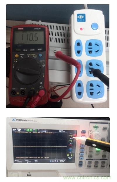 故意減掉PA2000mini功率分析儀的地線,這時候儀器處于接地不良的狀態(tài),機殼會帶110V電壓,會發(fā)生觸電危險!