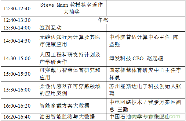 Wearable2017技術(shù)與產(chǎn)業(yè)論壇將從可穿戴和人機(jī)交互技術(shù)的起源,發(fā)展和應(yīng)用,探討前沿技術(shù)和服務(wù)社會(huì)的創(chuàng)新結(jié)合,Steve Mann教授將分享人本智能,可穿戴與物聯(lián)網(wǎng)全新的架構(gòu),其他演講嘉賓和主題包括:加拿大工程院士姜晶分享VR和AR在工業(yè)的應(yīng)用,國(guó)家千人專(zhuān)家,安進(jìn)醫(yī)療董事長(zhǎng)趙偉分享物聯(lián)網(wǎng)技術(shù)與產(chǎn)業(yè)的創(chuàng)新融合,中國(guó)可穿戴領(lǐng)域最早的開(kāi)拓者陳東義老師談可穿戴與AR在工業(yè)領(lǐng)域的應(yīng)用,中科院普適計(jì)算研究中心主任陳益強(qiáng)分享殘疾人的遠(yuǎn)程交互及可穿戴在醫(yī)療健康領(lǐng)域的應(yīng)用,蘇州能斯達(dá)電子科技創(chuàng)始人張珽介紹創(chuàng)新的柔性壓力傳感器在可穿戴領(lǐng)域的應(yīng)用案例,我愛(ài)方案網(wǎng)聯(lián)合創(chuàng)始人王勤分享智能穿戴和人工智能方案大數(shù)據(jù),中國(guó)石油大學(xué)專(zhuān)家張衛(wèi)山分享油田檢測(cè)與大數(shù)據(jù)。關(guān)于前沿技術(shù)和創(chuàng)新趨勢(shì)的領(lǐng)袖對(duì)話論壇,嘉賓包括國(guó)家體育總局智慧研究中心的李祥晨主任,海爾集團(tuán)科技專(zhuān)家,中科院深圳先進(jìn)技術(shù)研究院醫(yī)工所副所長(zhǎng)王磊,中興養(yǎng)老健康CEO蘆東昕和易瞳科技CTO艾韜等。7月28日在深圳的論壇現(xiàn)場(chǎng)將有十多個(gè)創(chuàng)新的可穿戴醫(yī)療健康和VR/AR的產(chǎn)品展示,各方資源將共同成立可穿戴與VR/AR的創(chuàng)新中心。