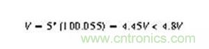 圖1.+5V電源 當連接一個10Ω的電阻時,輸出降低,導致測試失敗