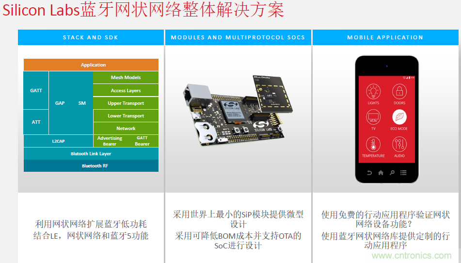 圖:Silicon Labs的無線模組和多協(xié)議 SoC采用了世界最小的SiP模塊級微型設(shè)計(jì),可以降低BOM成本并支持OTA設(shè)計(jì)。設(shè)計(jì)開發(fā)者還可以直接采用Silicon Labs的APP軟件進(jìn)行功能調(diào)試。