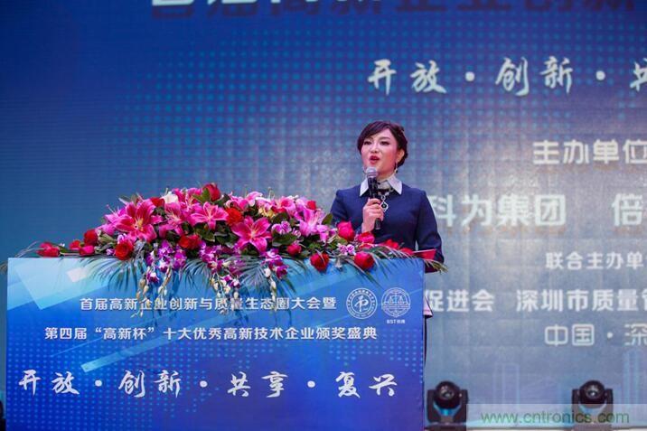 1月8日下午6:30開始的頒獎(jiǎng)慶典分別由深圳市質(zhì)量管理與檢測促進(jìn)會(huì)執(zhí)行會(huì)長、深圳市電子商會(huì)副會(huì)長、深圳市半導(dǎo)體與照明協(xié)會(huì)副會(huì)長、湖南工業(yè)大學(xué)工商管理碩士研究生導(dǎo)師、倍通檢測集團(tuán)創(chuàng)始人總裁鄧華麗女士、深圳市南山區(qū)科技創(chuàng)新局劉石明局長、深圳市電子商會(huì)創(chuàng)會(huì)會(huì)長王殿甫會(huì)長、中科為集團(tuán)董事長諸華軍先生致開場辭。