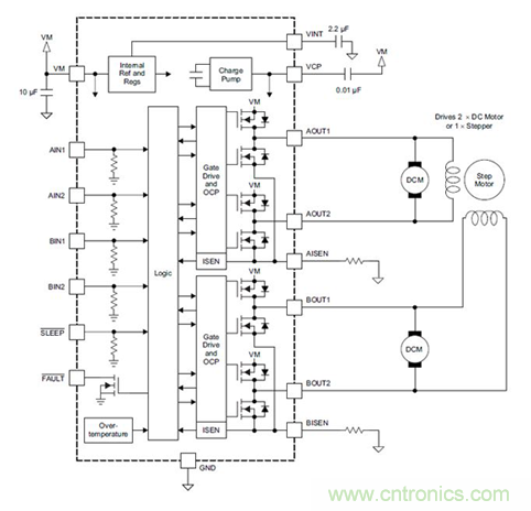 圖示4-大聯(lián)大世平代理的TI DRV8833方框圖