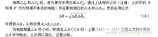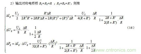 注意:上面(7)~(9)式中的R和其R′ 均為預(yù)調(diào)平衡后的電阻。此外,當(dāng)電阻增量△R較小時(shí),即滿足△R《《R時(shí),上面(7)~(9)三式的分母中含△R項(xiàng)可略去,公式可得以簡(jiǎn)化,這里從略。