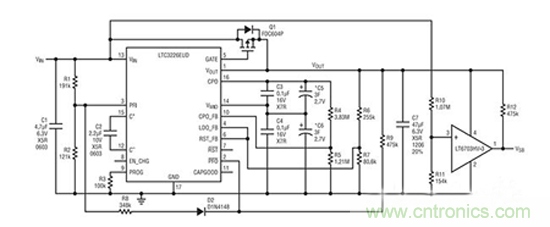 高性能手持式設備需要能夠為設備提供足夠長時間供電的電源后備系統(tǒng),以在電池突然被拿掉時可安全地保存易失性數(shù)據(jù)。超級電容器可在此類系統(tǒng)中充當緊湊和可靠的電源,但是它們需要用于充電及輸出電壓調(diào)節(jié)的專用控制系統(tǒng)。LTC3226通過把一個兩節(jié)超級電容器充電器、PowerPath 控制器、一個 LDO 穩(wěn)壓器和一個電源故障比較器全部集成在單個3mm x 3mm 16引腳 QFN 封裝之中,使得能夠輕而易舉地構(gòu)建一款完整的電源后備解決方案。