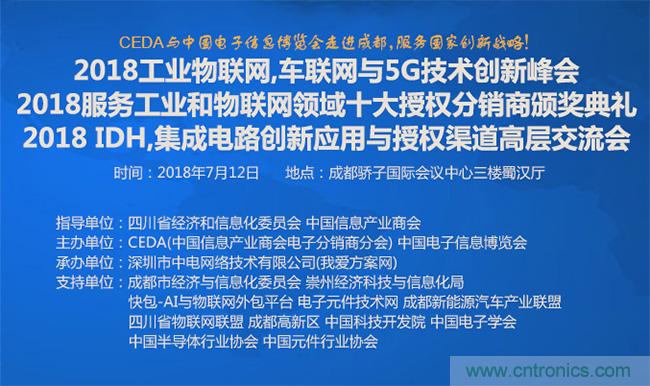 【導(dǎo)讀】中國芯片產(chǎn)業(yè)如何快速騰飛?CEDA認(rèn)為,通過應(yīng)用方案和授權(quán)渠道能快速占領(lǐng)市場。作為電子元器件的授權(quán)代理商協(xié)會組織,CEDA在中國信息產(chǎn)業(yè)商會的領(lǐng)導(dǎo)下服務(wù)國家創(chuàng)新和供應(yīng)鏈戰(zhàn)略。7月12日(中國電子信息博覽會期間),CEDA將在成都世紀(jì)城驕子國際會議中心舉辦2018工業(yè)物聯(lián)網(wǎng), 車聯(lián)網(wǎng)與5G技術(shù)創(chuàng)新峰會,嘉獎服務(wù)工業(yè)與物聯(lián)網(wǎng)領(lǐng)域的優(yōu)秀電子元器件授權(quán)分銷商并舉辦IDH,芯片設(shè)計公司,元件公司和授權(quán)代理商高層的交流會。