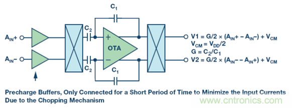 【導(dǎo)讀】ADI 專利的容性可編程增益放大器(PGA)相比傳統(tǒng)的阻性PGA具有更佳的性能,包括針對模擬輸入信號的更高共模電壓抑制能力。本文描述了斬波容性放大器的工作原理,強(qiáng)調(diào)了需要放大傳感器小信號至接近供電軌——比如溫度測量(RTD 或熱電偶)和惠斯登電橋——時(shí),此架構(gòu)的優(yōu)勢。