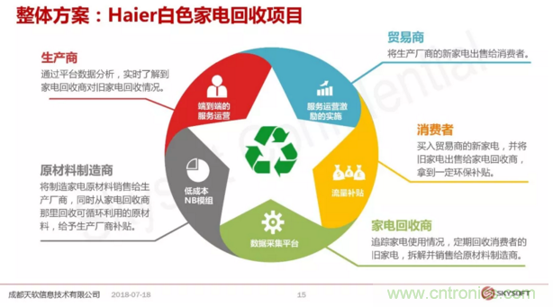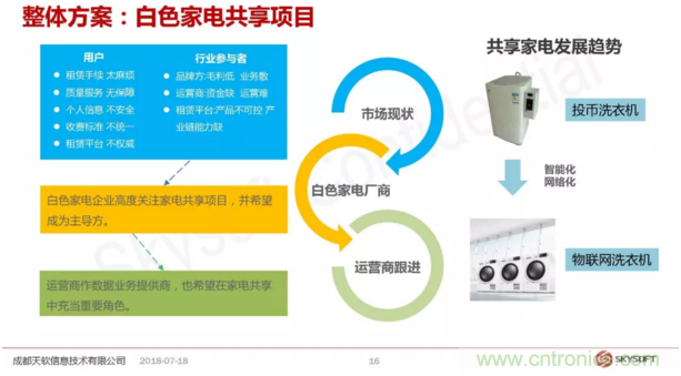 黃總介紹了天軟信息現(xiàn)有模組和設備的應用案例,包括給國外運營商提供的方案,為社區(qū)一鍵呼叫方案,還有端到端的應用方案。黃總說,“端到端是什么意思呢,不是說從芯片到設備或者到具體的一個行業(yè)應用,而是說基于一個客戶端提出來某種特定的場景應用需求,我們作為一個整體方案商從底層芯片到底端到中間的一些軟件包括策略這些整體推出的一個針對這個具體應用的一個解決方案。”黃總接著分享了兩個端到端的解決方案:白色家電回收和共享家電。精彩的案例受到聽眾的熱烈歡迎。