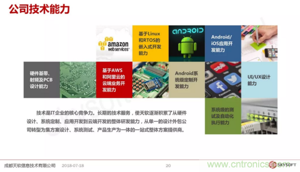 天軟信息成立于2014年,現(xiàn)有員工近150人,其中80%為研發(fā)人員。公司以成為全球領先的無線通信及智能產(chǎn)品技術提供商為愿景,致力于為物聯(lián)網(wǎng)及車聯(lián)網(wǎng)提供專業(yè)的無線通訊及智能產(chǎn)品解決方案。Skysoft是西部為數(shù)不多的擁有獨立綜合通信測試實驗室,并能提供LTE終端產(chǎn)品/模塊、無線路由器、車載通信及多媒體等軟硬件研發(fā)能力的高新技術企業(yè)。