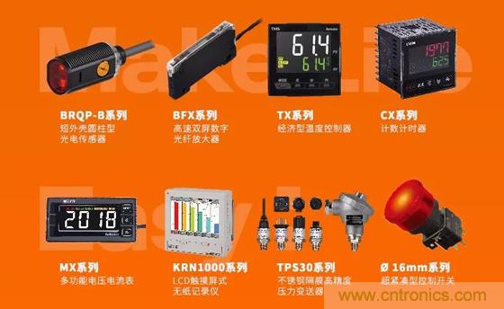 在此體系之下,企業(yè)近日再度推出了大量傳感器、控制器等新產(chǎn)品,其中包括短外殼圓柱型光電傳感器BRQP-B系列,高速雙屏數(shù)字光纖放大器BFX系列,溫度控制器TX系列,計(jì)數(shù)計(jì)時(shí)器CX系列,多功能電壓電流表MX系列,LCD觸摸屏式無(wú)紙記錄儀KRN1000系列,不銹鋼隔膜高精度壓力變送器TPS30系列,Ø 16mm控制開(kāi)關(guān),以及節(jié)省布線時(shí)間50%以上的傳感器連接器CNE系列......