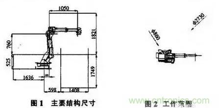 根據(jù)A II—V6L型工業(yè)機器人的主要參數(shù)進行設計。主要結構尺寸如圖I所示。機器人的工作范圍見圖2。