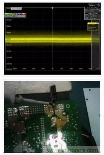 組圖四的測試紋波的結(jié)果值3.9921V比圖五0.126V大很多,但是組圖四的測試值是不真實(shí)的。問題分析:其實(shí)產(chǎn)品沒有問題。只是測試方法有問題而已?,F(xiàn)在我們就來指出問題點(diǎn):