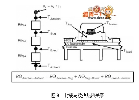 散熱設計是LED光源區(qū)別于傳統(tǒng)光源的課題之一。傳統(tǒng)燈具產(chǎn)生的熱遠高于LED,但傳統(tǒng)燈具不會因為高溫而降低其光源輸出能力,但LED的光輸出卻會隨著本身接口(Junction,?。校谓涌冢囟鹊纳叨陆?,如圖8所示。而其產(chǎn)生的熱如何散除到外界環(huán)境與其封裝結構材料息息相關,牽涉到使用的散熱材料與相關外型,關系如圖9所示,其中熱阻的概念,代表輸入W功率時,需要提高多少K溫度才足以散熱。以現(xiàn)有的封裝技術最高可允許LED操作在185℃(Lumiled?。耍玻?,但一般因為封裝膠材的關系,可允許的操作溫度約在125℃,除了考慮光源輸出效率之外,亦考慮封裝膠材的變質(樹脂類材料在高溫有老化現(xiàn)象)。