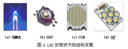 經(jīng)過40多年的發(fā)展,LED封裝技術(shù)和結(jié)構(gòu)先后經(jīng)歷了四個階段,如圖4所示。