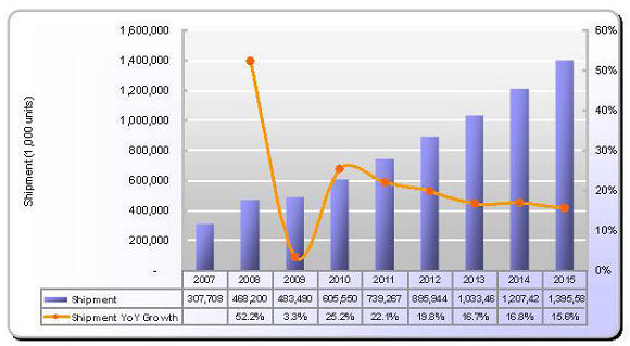 DisplaySearch日前發(fā)表《全球觸控面板市場分析與預(yù)測報(bào)告》指出,2008年全球觸控面板出貨超過4.6億片,雖然較2007年大幅成長52%,但由于受到經(jīng)濟(jì)沖擊的影響,2009年估計(jì)出貨將僅4.8億片,較2008年微幅成長3.3%。