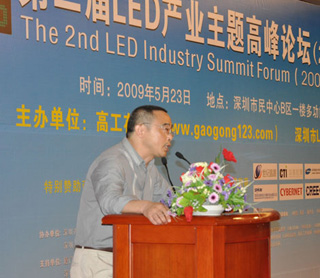 2009年5月23日,由高工在線和深圳市LED產(chǎn)業(yè)聯(lián)合會(huì)共同主辦的第二屆LED產(chǎn)業(yè)主題高峰論壇(2009夏季)在深圳市民中心B區(qū)一樓多功能廳隆重舉辦。來自香港應(yīng)用科技研究院的蔡振榮博士、清華大學(xué)深圳研究生院副研究員、半導(dǎo)體照明實(shí)驗(yàn)室副主任錢可元教授、康佳光電研究所副所長(zhǎng)馬志凌博士、CREE 中國(guó)區(qū)總經(jīng)理唐國(guó)慶、世紀(jì)晶源研發(fā)中心主任鐘群博士、深圳雷曼光電科技限公司總經(jīng)理李漫鐵、德士達(dá)光電照明科技(深圳)有限公司的總經(jīng)理熊映翔、深圳市華測(cè)檢測(cè)技術(shù)股份有限公司(CTI華測(cè)檢測(cè)機(jī)構(gòu))副總裁/廣州市華德檢測(cè)技術(shù)開發(fā)有限公司(DEKRA-CTI華德)總經(jīng)理聶鵬翔、深圳茂碩電源科技股份有限公司的技術(shù)總監(jiān)蘇周等嘉賓就LED芯片、核心器件、顯示、道路照明、路燈標(biāo)準(zhǔn)與關(guān)鍵技術(shù)、LED驅(qū)動(dòng)電源、LED產(chǎn)品檢測(cè)、認(rèn)證和標(biāo)準(zhǔn)化等方面發(fā)表了主題演講。