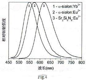 [page]2007年日本材料科學(xué)研究所納米陶瓷中心得到的結(jié)果是最高的[3],他們采用中心波長為450nm的InGaN藍(lán)光LED和光子轉(zhuǎn)換效率高、在450nm藍(lán)光范圍 有強(qiáng)吸收峰、溫度系數(shù)低的三種熒光粉進(jìn)行了試驗,這三種熒光粉分別為:α-sialon: Yb2+、α-sialon: Eu2+和Sr2Si5 N8: Eu2+。這些熒光粉的特點是發(fā)光效率的熱衰減較小,在