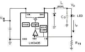 如果直接用電阻RFB來檢測IF,這樣在精度上就可以滿足要求,但是在電阻上將會產(chǎn)生額外的功耗。降低反饋電壓VFB,在同樣的檢測電流IF(圖.2)的情況下可以降低檢測電阻的阻值,這樣就可以使功耗降到最低。最新的LED驅(qū)動大多數(shù)提供的參考電壓(反饋電壓)在50-200毫伏之間。