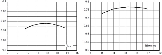 這參考設(shè)計(jì)在不同交流輸入電壓條件下的輸出電流及在不同直流電壓條件下的能效測(cè)試結(jié)果分別如圖3a及3b所示。其中,如圖3b所示,這參考設(shè)計(jì)在11至17 Vdc范圍下能效高于0.75,這個(gè)能效數(shù)據(jù)在這類低功率應(yīng)用中表現(xiàn)亮眼。