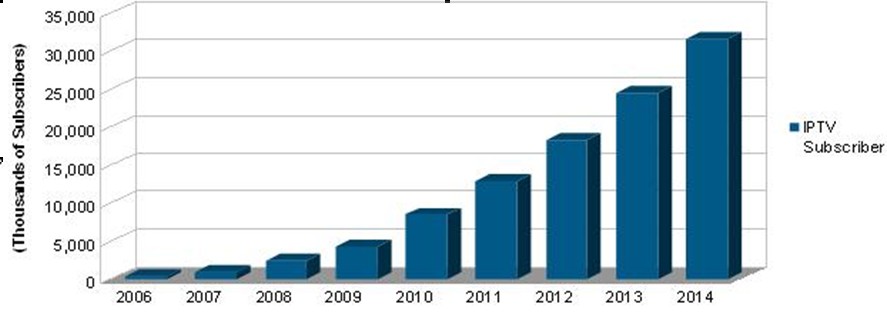 IPTV用戶增長將主要來自中國廣播運營商擴大布署的努力。這些運營商擁有非常寶貴的IPTV牌照。