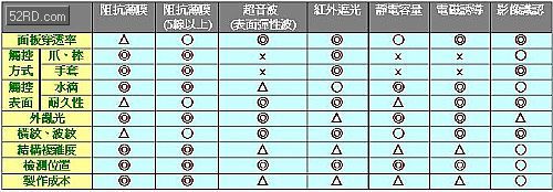 表1各種觸控面板結(jié)構(gòu)特性比較