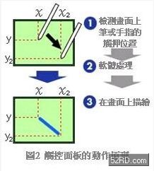不論觸控面板採(cǎi)用哪種方式,最后目的就是檢測(cè)使用者觸控位置(座標(biāo)軸)(圖2)。