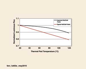 熱/冷因數(shù)的改善增加了LED的工作溫度范圍,讓照明設計師有機會在LED極限內的任何結溫下工作。