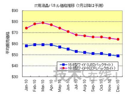 圖1:IT用液晶面板價(jià)格走勢(7月份以后為預(yù)測值)