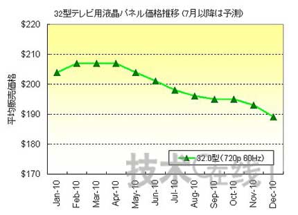 考慮到電視機(jī)廠商的面板以及完成品的庫存調(diào)整沒有取得進(jìn)展,針對2010年下半年的需求期,面板供貨量本身的增加將趨于緩和。包括暢銷的32英寸電視機(jī)面板、筆記本電腦用面板和顯示器用面板在內(nèi),液晶面板的庫存調(diào)整將很有可能從7月份持續(xù)到8月份。因此,8月份的面板價(jià)格不會(huì)反彈,將與上月持平(價(jià)格維持)或繼續(xù)保持小幅調(diào)整。而且,很有可能從季節(jié)需求告一段落的11月前后開始加速下滑。另外,筆者想事先補(bǔ)充的一點(diǎn)是:如果9月份以后面板及完成品繼續(xù)進(jìn)行存調(diào)整,那么不用等到11月,面板價(jià)格就有可能開始加速下滑。