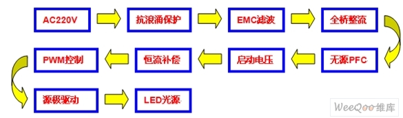 圖118WLED日光燈系統(tǒng)方案設(shè)計方框圖