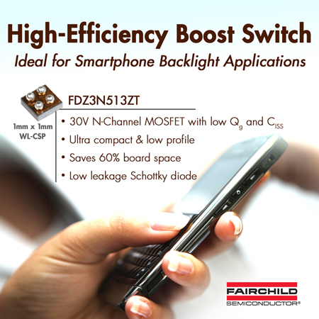 FDZ3N513ZT是升壓轉(zhuǎn)換器中的主要元件,用以驅(qū)動串聯(lián)白光LED,為智能電話的顯示屏(以及按鍵,如果有鍵盤的話)提供照明。