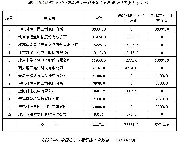 據(jù)協(xié)會副秘書長金存中介紹,晶硅太陽能行業(yè)的快速增長是眾多設(shè)備企業(yè)快速發(fā)展的關(guān)鍵。占電子專用設(shè)備銷售收入一半的半導(dǎo)體設(shè)備,今年上半年銷售收入比去年同期增長了50.3%,達到16.79億元,這主要來自上半年光伏產(chǎn)業(yè)對晶硅太陽能設(shè)備需求的增長。上半年半導(dǎo)體設(shè)備的銷售收入中,晶硅太陽能設(shè)備占79.5%,達到13.34億元。其中,晶硅材料生長加工設(shè)備7.37億元,電池芯片生產(chǎn)設(shè)備5.97億元。
