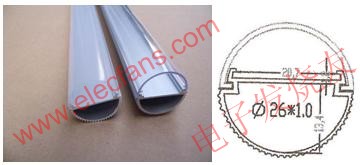 這種半圓柱的表面積為:2πR*h/2=πR*h。對于T8燈管來說,它的直徑為26mm,所以半徑為13mm。1.2米的T8燈管,其表面積為:π*1.3+120=490cm2,我們知道LED散熱器的表面積通常要求60cm2/W。,所以這種半鋁管只能散8W左右的熱量。而T8型LED日光燈通常輸入功率為20W,假定LED的發(fā)光效率只有20%,那么有16W的輸入電功率都變成熱量。而現(xiàn)在只能散去8W的熱量,而還有8W的熱量無法散去,其結(jié)果就是使得LED的結(jié)溫升高,壽命縮短。