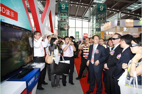 部省領(lǐng)導(dǎo)在去年的彩電節(jié)上參觀并體驗長虹集團的3D技術(shù)