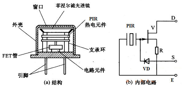 圖6:紅外傳感器內(nèi)部結構與內(nèi)部電路圖
