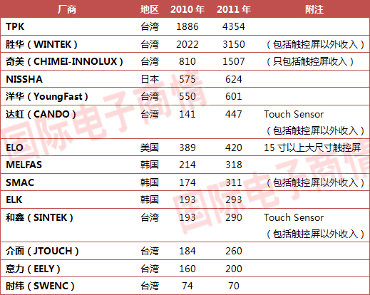 據(jù)水清木華研究中心最新報(bào)告,經(jīng)歷了2010年的爆發(fā)后,觸控屏行業(yè)開始呈現(xiàn)兩極分化。大廠家的收入飛速增加,而小廠家收入微幅增長甚至衰退。TPK和勝華兩大巨頭占據(jù)了行業(yè)的高端位置,以技術(shù)優(yōu)勢和客戶優(yōu)勢牢牢地占據(jù)了市場的大部分份額。雖然觸控屏整體市場在2011年繼續(xù)高速增長,但中小廠家卻很難從中獲益。2010年市場大好,使得不少企業(yè)都擴(kuò)大了產(chǎn)能,這樣不僅是電阻觸控屏出現(xiàn)激烈的殺價(jià)競爭,電容觸控屏也出現(xiàn)殺價(jià)競爭。