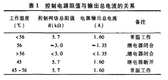結(jié)合表1,常溫工作時,總阻值為5.7kΩ,可將圖3中W1設(shè)置為5.7kΩ,當LED燈珠溫度r≥56℃時,因Kt閉合,恒流電源輸出減小,此時要使控制網(wǎng)絡(luò)總電阻為3kΩ,經(jīng)過計算,Rntc值為3.6 kΩ。