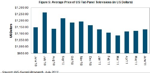 - 6月份平板電視的平均價格達到1133美元
