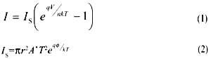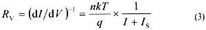 視頻電阻是伏安特性曲線在原點及其附近的斜率,它反映了勢壘高度的相對變化,決定著在零偏置或一定偏置條件下低電平射頻到直流的功率轉(zhuǎn)換效率。它可由肖特基勢壘二極管的伏安特性來表示[1]
