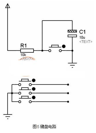 鍵盤(pán)是使用比較簡(jiǎn)單的獨(dú)立式鍵盤(pán)。編程容易控制,實(shí)現(xiàn)方便,如圖5 所示。
