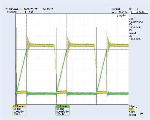反激式轉(zhuǎn)換器到目前為止就是一個所謂的硬開關轉(zhuǎn)換器。其意思是在漏電流較高時MOSFET斷開,在漏電壓較高其接通。因為在每個開關周期里,下降/上升電流和上升/下降電壓交迭,它們的結果是不可忽略的,每次轉(zhuǎn)換有相當大的稱作開關損耗的功率損耗。在一個DCM反激中,在MOSFET導通時無電流流過,但MOSFET的固有電容CDS必須放電,并且儲存在此電容中的能量必須消耗。如果還記得,儲存的能量為0.5xCDSxVDS2,很顯然,以盡可能低的VDS 接通MOSFET是有利的。