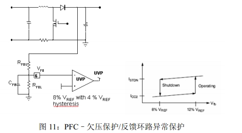 •PFC異常保護(hù),可以在出現(xiàn)PFC異常的情況下,器件停止工作,即使輸入為高線路電壓;