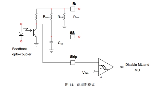 1.一個引腳用于Fmax、Fmin及FSS:Rmin決定LLC最小頻率;Rmin//Rmax決定LLC最大頻率;Rmin//RSS決定LLC啟動頻率;RSS和CSS決定軟啟動持續(xù)時間。Rt引腳控制LLC