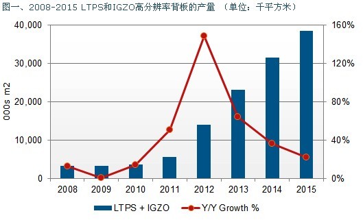 根據(jù)NPD DisplaySearch TFT LCD制程技術(shù)藍(lán)圖趨勢(shì)報(bào)告(TFT LCD Process Roadmap Report)指出,2012年高移動(dòng)速率TFT-LCD背板產(chǎn)量預(yù)計(jì)將提高150%,從2011年的560萬(wàn)平方米迅速發(fā)展到1千410萬(wàn)平方米。如此高成長(zhǎng)的驅(qū)動(dòng)力主要在于許多五代線(xiàn)和更大的低溫多晶硅(LTPS)產(chǎn)線(xiàn)于2012年開(kāi)始投入生產(chǎn),且夏普、樂(lè)金顯示和三星現(xiàn)有的產(chǎn)線(xiàn)也投入生產(chǎn)金屬氧化物(IGZO)。
