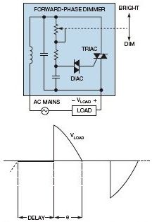 這種類型的調(diào)光能很好地用于白熾燈,因為它們是簡單的阻型負(fù)載。當(dāng)導(dǎo)通角減小時,燈絲電阻上時間平均的電壓也下降,從而提供了自然平滑的調(diào)光。
