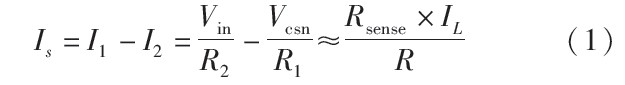 式(1)中,實際流過Rsense的電流為IL+I2.因為I2的大小低于電感電流的10-4倍,其影響可以忽略不計。
