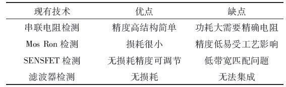 表1中列出了現(xiàn)有的幾種電流檢測技術(shù)并列舉了其優(yōu)缺點。