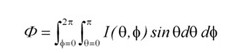 藉由量測(cè)光強(qiáng)度分布I(θ,Φ)如圖9所示,光通量可由公式(4)求得。若以亮度探頭量測(cè)照度值E(θ,Φ)進(jìn)行校正,光通亮的計(jì)算方式可由公式(5)計(jì)算出來。其中γ為相對(duì)于亮度探頭參考平面的旋轉(zhuǎn)半徑。量測(cè)光強(qiáng)度時(shí),γ須要有足夠的長(zhǎng)度。