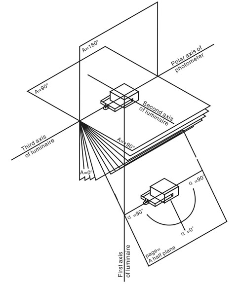 圖6 配光曲線儀A-α量測(cè)形式示意圖