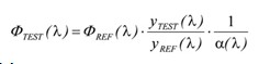 公式(2)中,yTEST (λ)為待測(cè)樣品在此系統(tǒng)下的光譜輻射計(jì)的讀值、yREF(λ)為參照標(biāo)準(zhǔn)燈在此系統(tǒng)下的光譜輻射計(jì)的讀值,α(λ)則為自吸收因子。