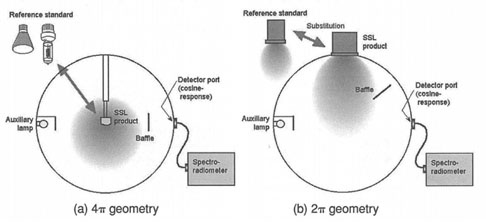 此份規(guī)范定義兩種光通量的量測(cè)系統(tǒng)方法,一是使用積分球系統(tǒng),另一種則為使用配光曲線儀系統(tǒng)。使用哪種系統(tǒng)須依據(jù)所要量測(cè)的量(顏色、光強(qiáng)度分布)及待測(cè)樣品尺寸等來決定。